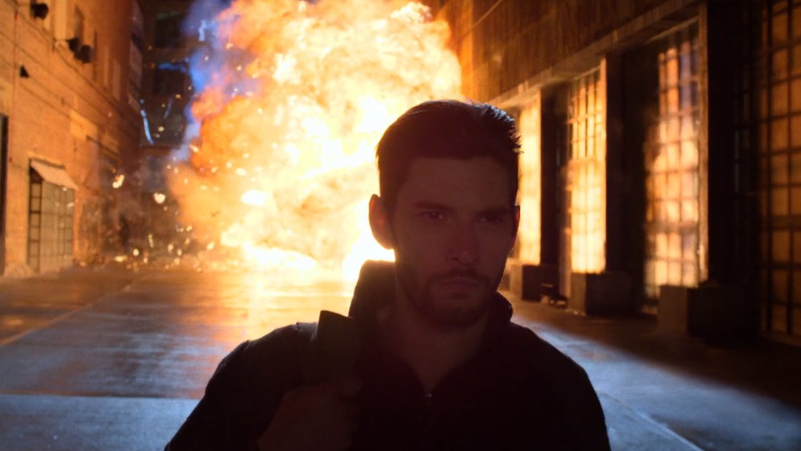 ground level. He firebombs the building for good measure as he walks away. Don’t