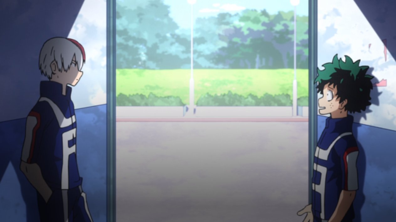 between Izuku Midoriya and Shoto Todoroki. Uraraka joins the rest of the class,