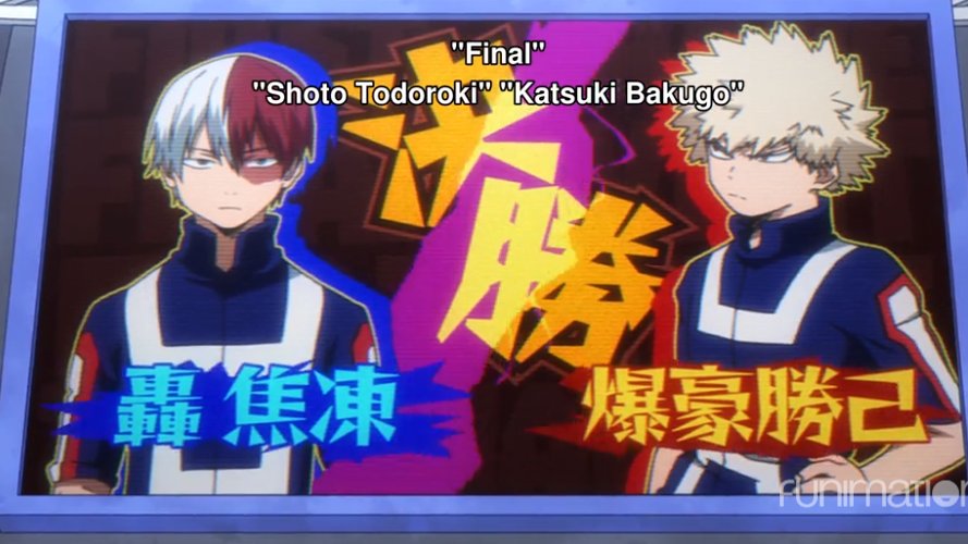 begins, Shoto Todoroki vs. Katsuki Bakugo. Bakugo opens like he always does,