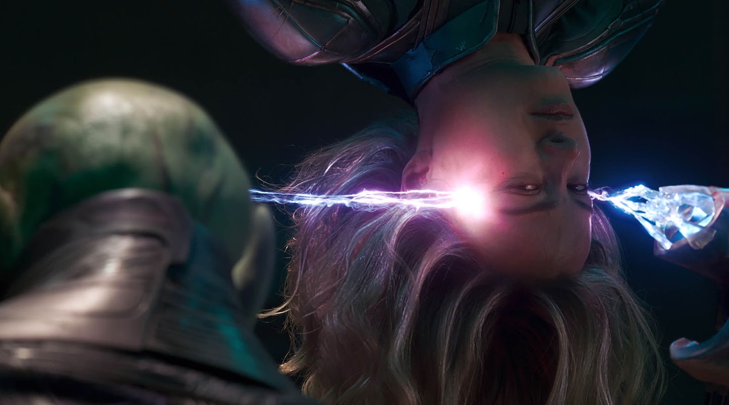 that includes Carol’s energy blasts, the advanced Kree weapons, and the