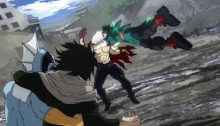 and Nejire rush back in to help as well. As Bakugo drops, he remembers Best